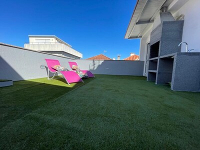 Ja no piso superior há um espaçoso terraço com churrasqueira e espreguiçadeira, que proporciona prazerosos momentos de lazer e descanso equanto deliciar-se de um saboroso churrasco e repõe as energias.