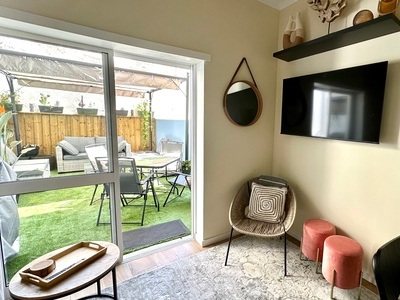 Com mesa para refeições ao ar livre, sofás e churrasqueira, este é o cenário perfeito para desfrutar do clima agradável da cidade, seja com um café da manhã ensolarado ou um jantar sob o céu estrelado.